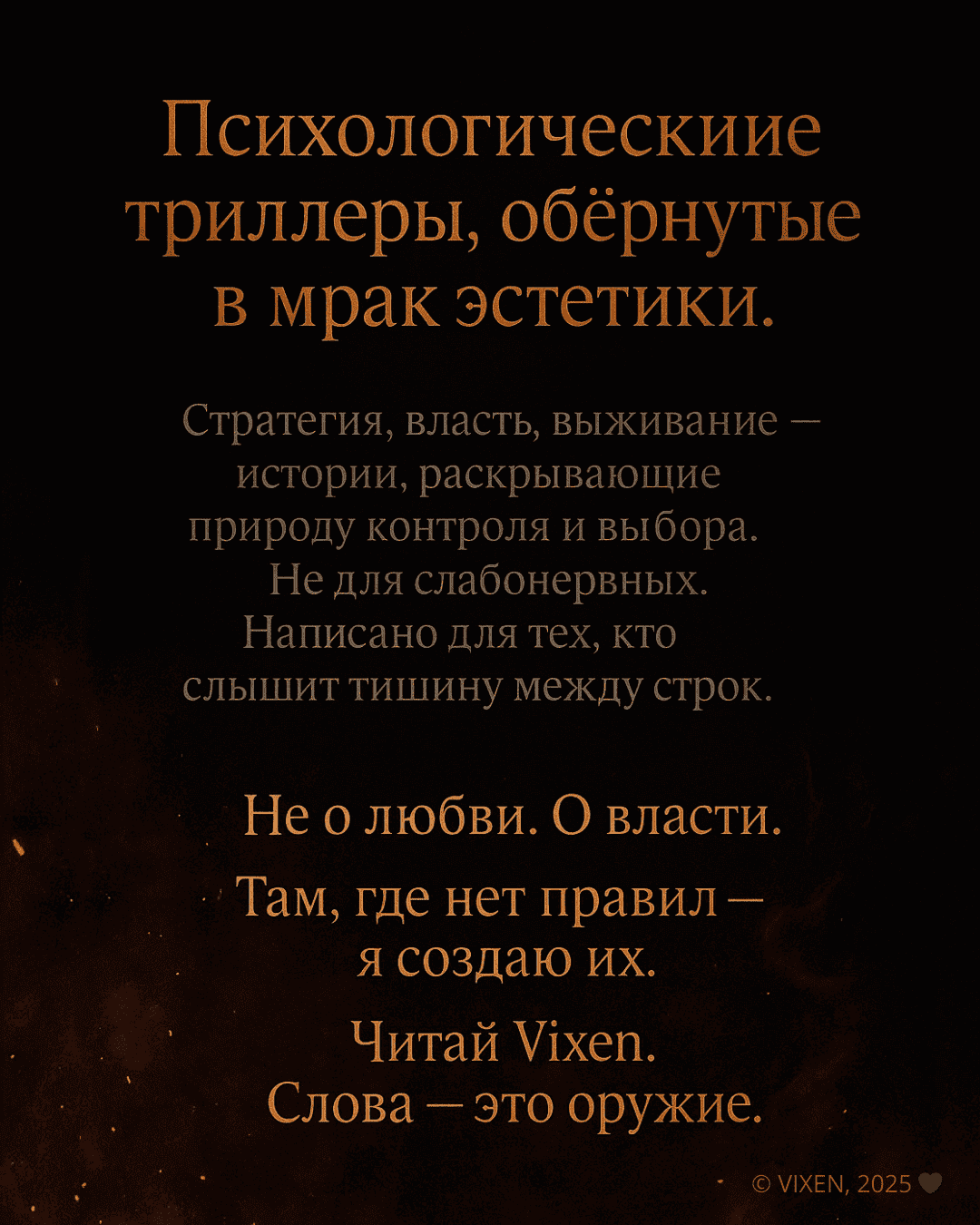 #ПсихологическийТриллер #ТёмнаяЭстетика #СилаИКонтроль #ЧитайVIXEN #Логово